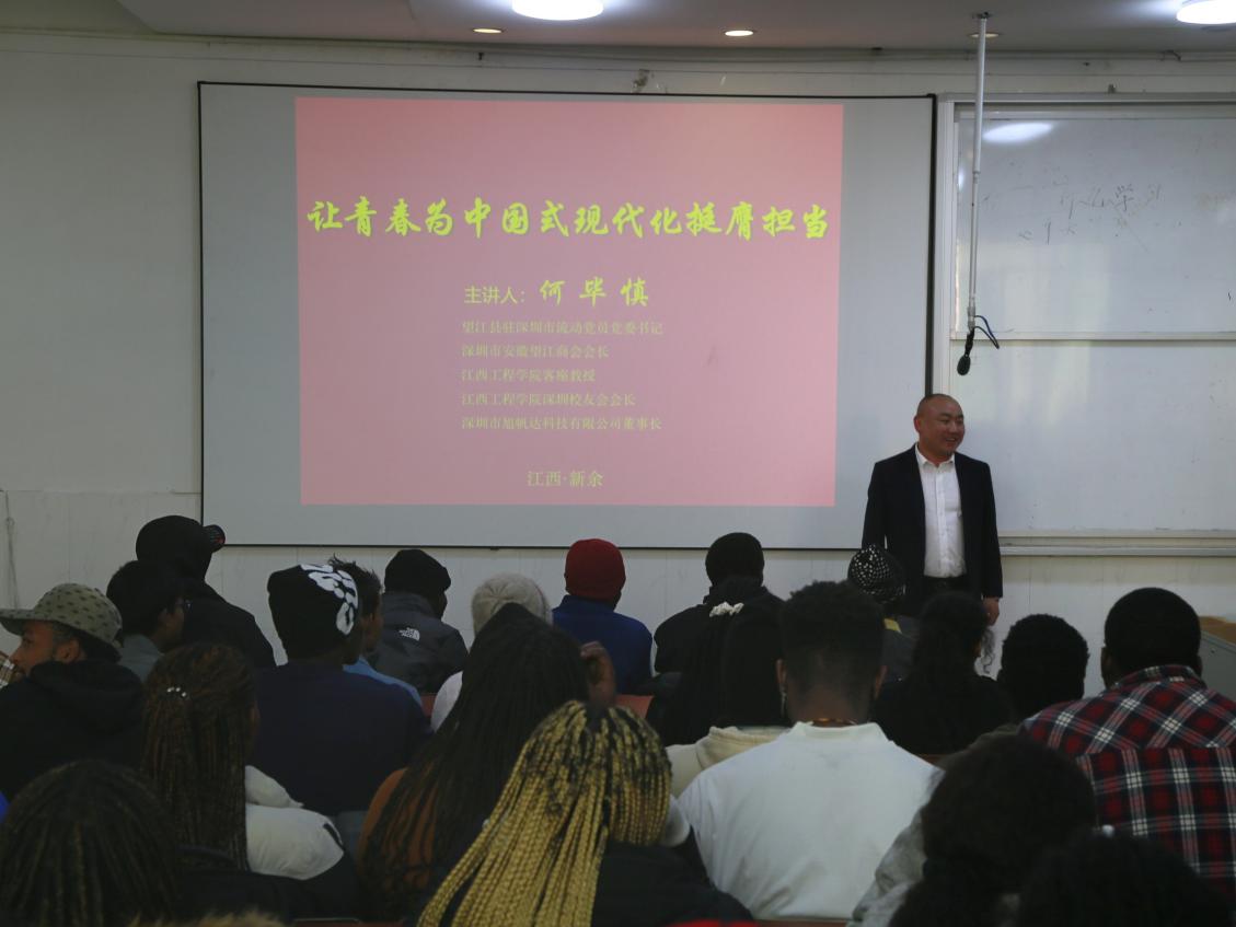 为充分发挥优秀校友的榜样引领作用,激励国际留学生积极进取、奋发向上,近日,国际教育学院于校内报告厅隆重举办了校友榜样力量育人讲座。此次讲座特邀聚亿商企管供应链负责人余雪斌先生和深圳市旭帆达科技有限公司董事长何毕慎先生作为主讲嘉宾,为国际留学生分享他们的求学、职业及创业经历。国际教育学院的师生代表及全体留学生共计100余人参加了此次活动,讲座由国际教育学院陈璐主持。