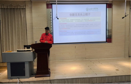 讲座伊始,周昌勇以其丰富的实践经验与深厚的理论功底,围绕“创新无关头上帽子——讲述三个和尚的故事”、“创新企业浴火重生——讲述新余钢铁的故事”、“创新护航企业发展——讲述瀚德科技的故事”、“创新创业主动作为——讲述当代学生的目标”四个话题进行了深入浅出、生动有趣的讲解。