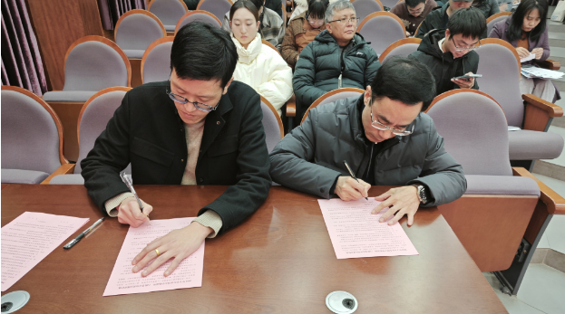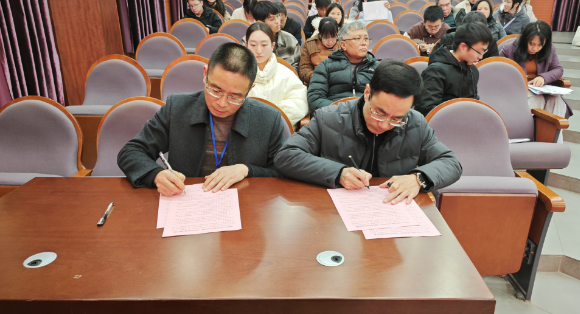 随后,为压紧压实二级学院主体责任,刘德华同二级学院代表签订了工作责任状;接着,教务处处长康梅兰传达了省、市教育考试部门有关会议精神,考试中心主任王鹏就本次全国大学英语四、六级考试监考教师及考试工作人员进行了警示教育,并针对考务及监考各环节作了详细的业务培训。