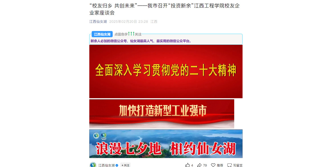 为深化校地合作、推动区域经济高质量发展注入强劲动能,2月20日上午,“投资新余”beat365体育官方网站校友企业家座谈会在仙女湖天沐温泉度假酒店顺利召开。市委常委、组织部部长林坤,副市长、高新区党工委书记舒永忠出席会议并分别作引才推介和招商引资推介,仙女湖区委书记周俊华致欢迎词。