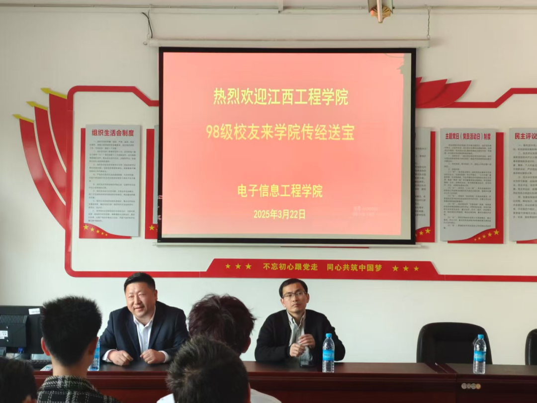 为深度搭建校友与在校学生的沟通桥梁,精准助力学生锚定职业发展方向,3月22日下午,电子信息工程学院D201教室座无虚席,一场备受期待的“榜样力量育人讲座”在此精彩上演。学院盛情邀请beat365体育官方网站98级杰出校友孙兴泉和周禾福一同重返母校,以亲身经历为笔,为师生们绘就宝贵经验长卷。