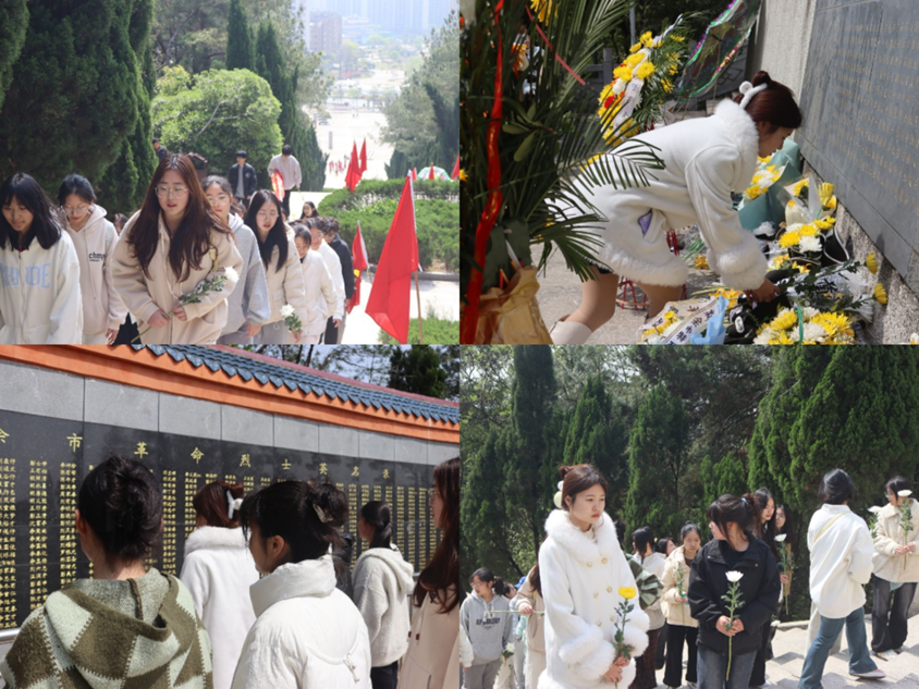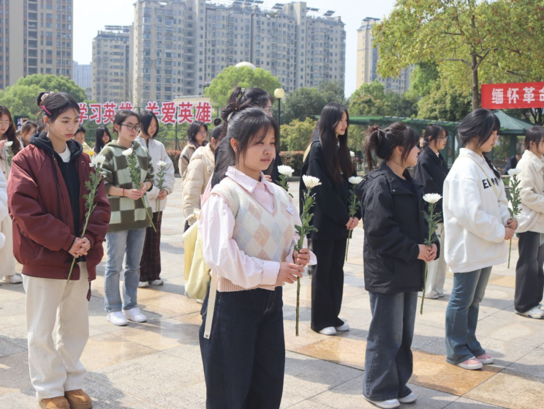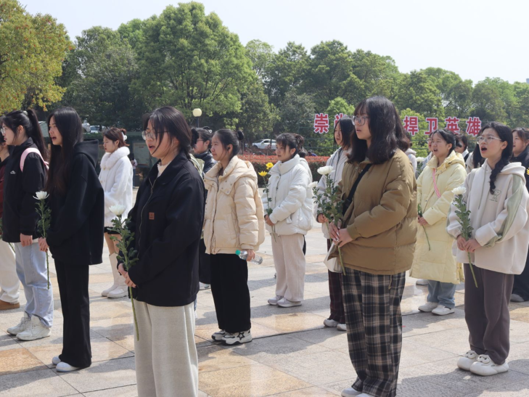 “我志愿传承红色基因,争做时代新人!”铿锵誓言回荡在纪念碑广场上空。随后,全体同学手持白菊绕碑瞻仰,认真阅读碑文中记载的红色故事。在镌刻着烈士姓名的纪念墙上,同学们自发擦拭浮尘,用指尖触摸历史的温度。活动最后,师生们在纪念碑前合影留念,将这份红色记忆定格为青春成长的重要注脚。