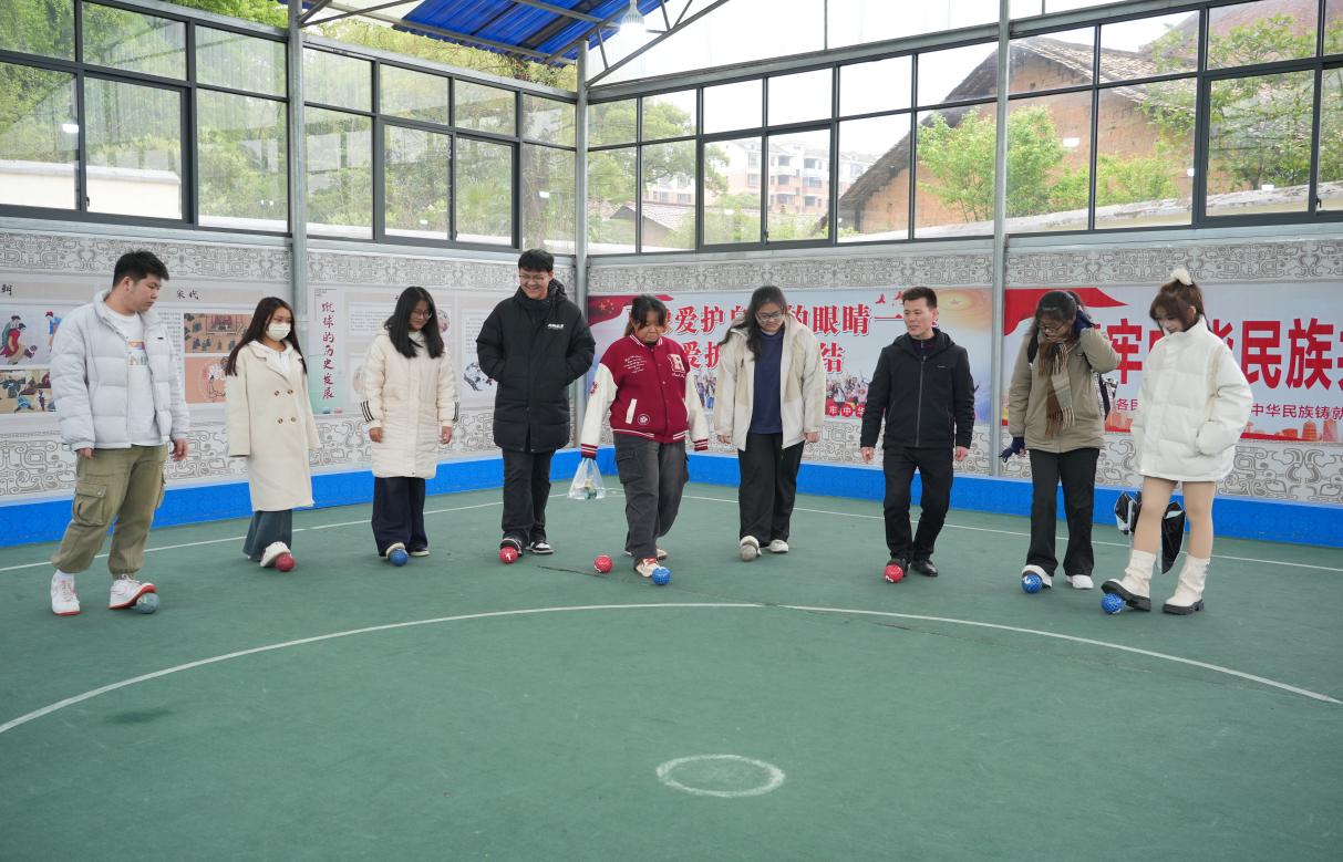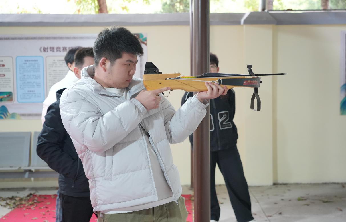 随后,师生们来到天工校区蹴球馆,在蹴球馆和射弩馆开展少数民族传统体育运动项目交流,马学儒老师进行了现场示范教学,师生们分组体验了这项源于宋代的传统运动。汉族学生王文娟表示:“以前只在课本里见过弩,亲手操作才懂古人的智慧!”