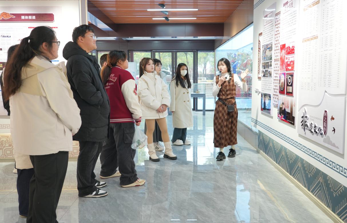 活动首站,师生代表走进仙女湖校区“铸牢中华民族共同体意识主题展示馆”。在讲解员的引导下,同学们通过展馆内的图文、实物陈列和多媒体影像,系统参观学习了中华民族多元一体的历史脉络,详细学习了“五个共同”具体内容:我国各民族共同开拓了祖国的辽阔疆域,共同缔造了统一的多民族国家,共同书写了辉煌的中国历史,共同创造了灿烂的中华文化,共同培育了伟大的民族精神。重温了“彝海结盟”“三千孤儿入内蒙”“昭君出塞”等民族团结经典故事。壮族学生吴丽丽表示:“展厅里各民族服饰、少数民族传统体育器材和团结故事让我深刻感受到,中华文化是各民族共同创造的瑰宝。”