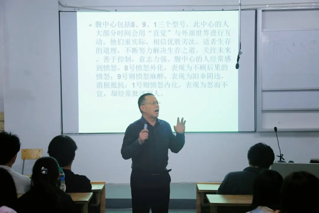 讲座初始,何荣宣副教授简要介绍了九型人格理论的基本概念和分类。随后,他详细解释了九种不同的人格类型,包括它们的特点、优点及潜在的问题。通过深入剖析每种人格类型的特质,帮助同学们更好地认识自己,发现自己的优势和潜力,使同学们对自身有了更清晰的认知。