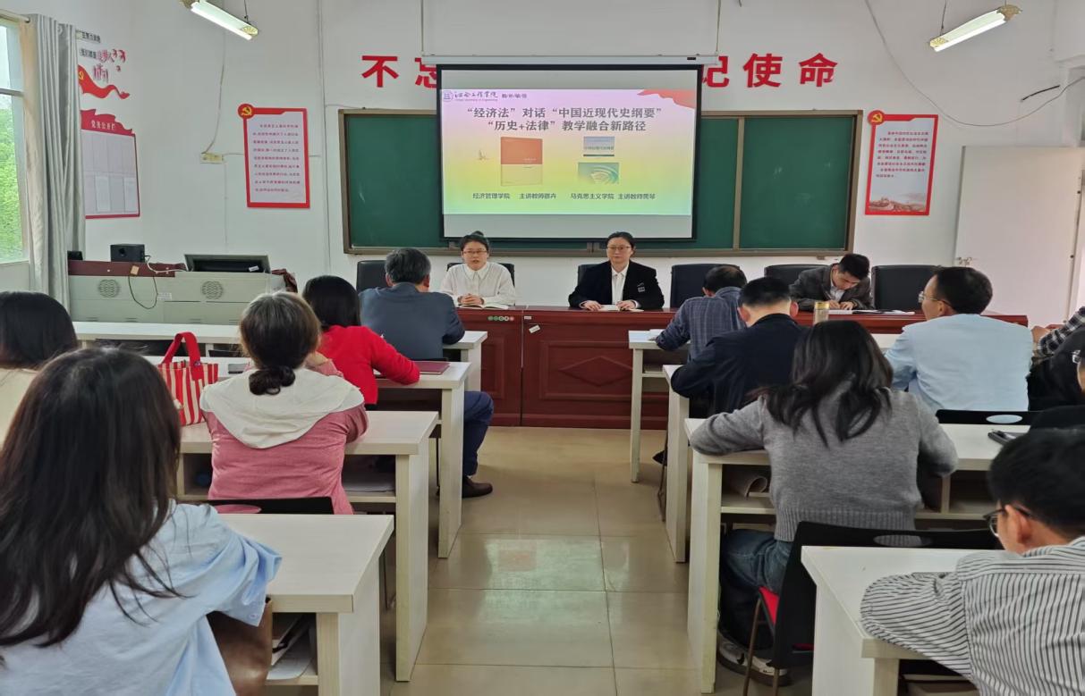 《中国近现代史纲要》课程是引导大学生坚定中国特色社会主义道路自信、制度自信、理论自信和文化自信的核心思政课程,而“经济法”作为经济管理类专业的基础性法律课程,对培养学生法治思维与法律素养至关重要。“此次融合教学以历史视角审视法律发展脉络,以法律逻辑解读历史变迁规律,助力学生全面理解中国近现代史与法治建设的互动进程。”马克思主义学院教师黄琴介绍道。