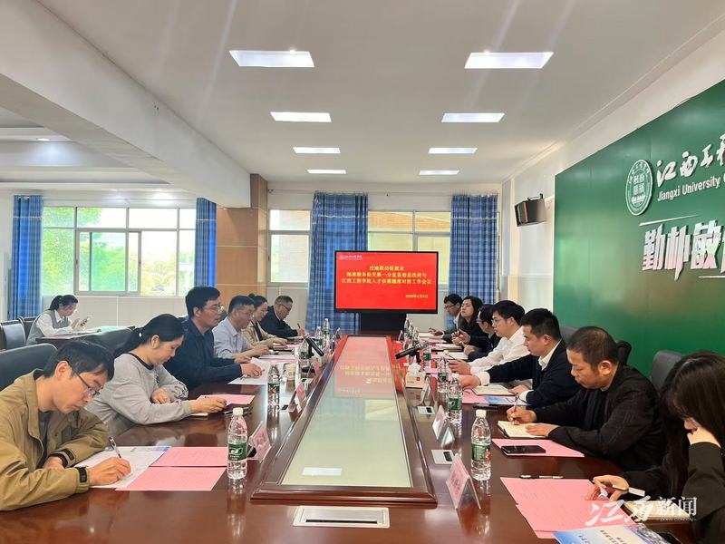 会议期间,双方就招才引智、产教融合、实习实训等方面进行了深入交流。分宜县工业园区管委会副主任唐柏赞详细介绍了分宜县近年来的经济社会发展全景,尤其是分宜工业园区在锂电新能源、光电信息、装备制造三大主导产业领域,一路高歌猛进,产业集群规模持续壮大,对各类专业人才的需求日益旺盛。该校就业处负责人汇报了近三年毕业生规模及毕业去向,并重点说明毕业生留赣留余率数据及服务地方发展的具体举措,提出了校企合作、定向培养、实习实训等合作建议。