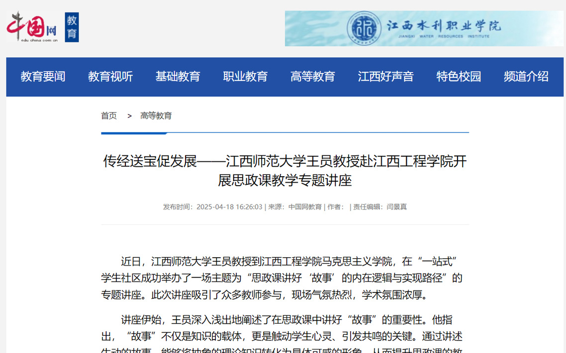 【中国网教育】传经送宝促发展——江西师范大学王员教授赴beat365体育官方网站开展思政课教学专题讲座