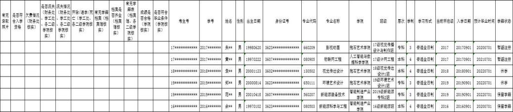 各二级学院相关负责人下载超期学生学籍信息核对名单(由教务处点对点下发至教学副院长),并组织相关人员认真核对学生学籍信息,具体情况做如下安排: