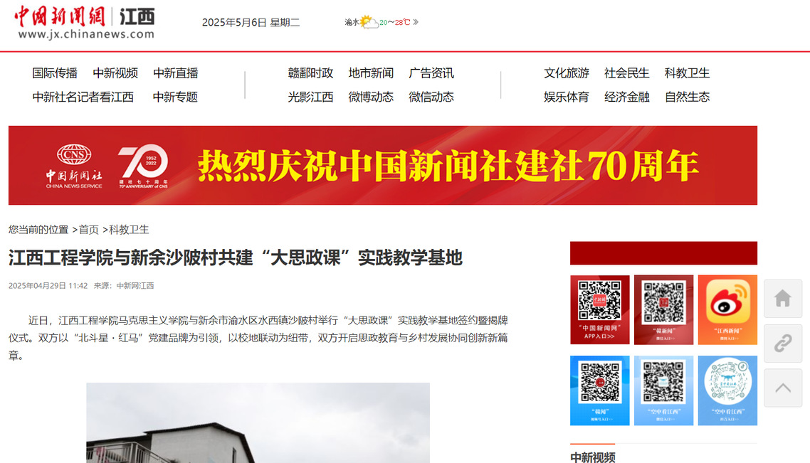 近日,beat365体育官方网站马克思主义学院与新余市渝水区水西镇沙陂村举行“大思政课”实践教学基地签约暨揭牌仪式。双方以“北斗星・红马”党建品牌为引领,以校地联动为纽带,双方开启思政教育与乡村发展协同创新新篇章。