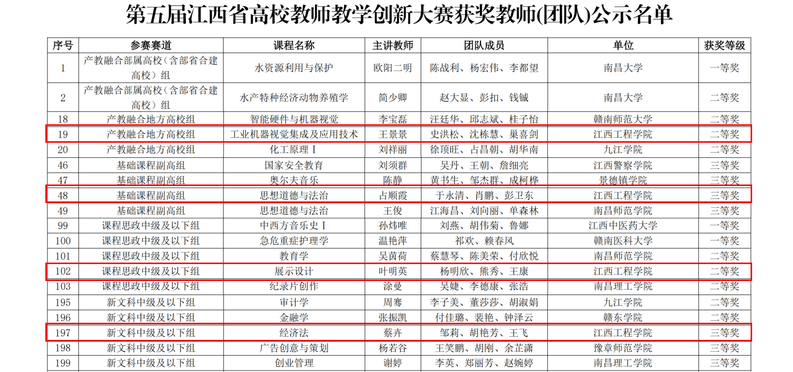 第五届江西省高校教师教学创新大赛由江西省教育厅指导,江西省高等教育学会主办,是《教育部直属单位三评一竞赛保留项目清单》中唯一的本科高校教师教学竞赛活动。大赛以“推动教学创新,培养一流人才”为主题,紧扣教育强国建设目标,旨在为人才培养质量提升储备新生力量。省赛由网络评审和现场赛两个环节组成,网络评审包括课堂教学实录视频和教学创新成果报告,现场赛为教学设计创新汇报。本次大赛共吸引来自全省45所本科高校的1643名教师(团队)参赛,经校赛、省赛,共产生一等奖40个、二等奖85个、三等奖90个、优秀组织奖16个。