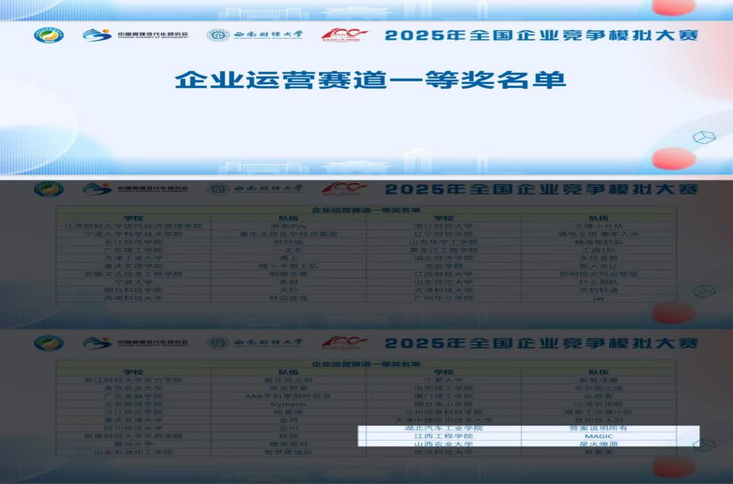 全国企业竞争模拟大赛是教育部认可的国家级A类赛事,具有较高的权威性和影响力,是国内规模最大、影响力最广的商科竞赛之一,是国内商科类竞赛的“奥林匹克”,旨在通过模拟真实商业环境,考验参赛者的战略决策、风险控制和团队协作能力。本届大赛设置企业决策、企业运营、供应链决策、数智沙盘四大赛道,覆盖本科、研究生及高职组别,本届大赛竞争激烈程度创历史新高,吸引了新华社等权威媒体的专题报道。
