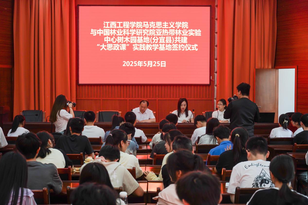 为深入贯彻教育部《全面推进“大思政课”建设的工作方案》精神,落实立德树人根本任务,开展“行走的思政课”实践教学活动,学校与中国林业科学研究院亚热带林业实验中心树木园研学基地(分宜县)(以下简称“树木园”)依托各自资源优势于5月25日上午在树木园正式签约揭牌共建“大思政课”“家门口的思政课”、思政课实践教学基地。校党委委员、宣传部部长兼马克思主义学院直属党支部书记于永清、树木园经理程丽出席仪式,100余名学生代表参加了本次活动。