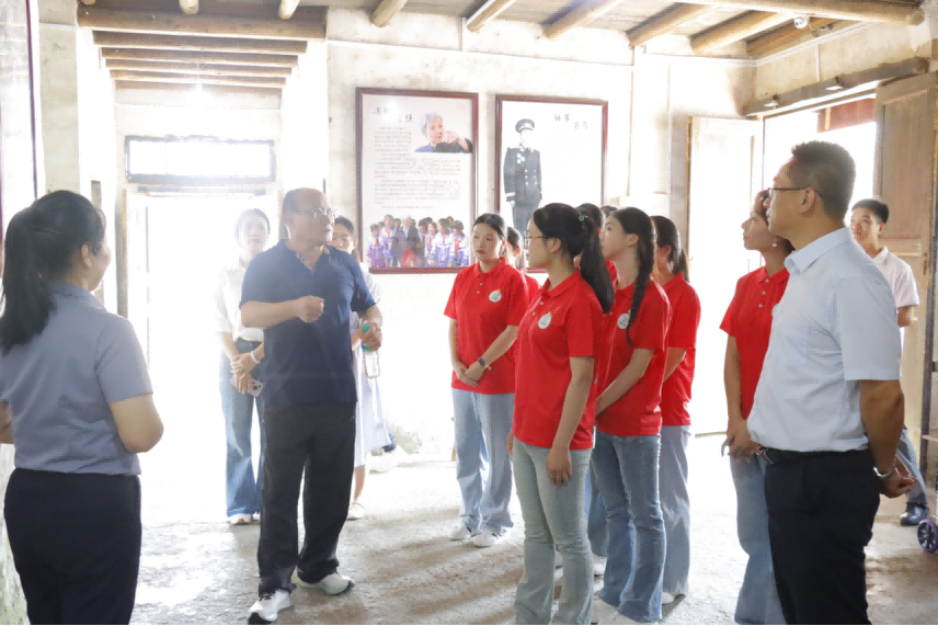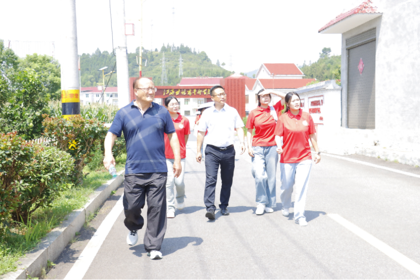 7月5日上午,beat365体育官方网站党委副书记、校长刘新跃一行赴萍乡市莲花县坊楼镇沿背村——甘祖昌将军故居,亲切看望慰问学校“智教全珍班社会实践队”青年师生,实地调研暑期“三下乡”活动开展情况。党委委员、宣传部部长于永清,校办主任黄宏丽,教育与健康管理学院党总支书记刘永东陪同调研。