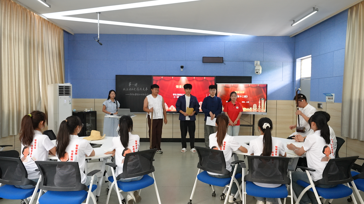 “将军,省公路局说修桥要10万,咱上哪凑这么多钱啊?”课堂伊始,智能制造与建造学院黄健、叶实胜、陈飞廷、教育与健康管理学院叶娜等学生编排的红色故事原创情景演绎《一座桥变十二座》,瞬间将众人带回了1966年的沿背村,故事伴随着学生二胡《唱支山歌给党听》的旋律落下帷幕。龚老师手持反修桥模型,与学生一同解析剧中深意:“甘祖昌将军用旧石料垒桥墩、捡水泥袋省开支,最终仅花1.2万元就修成了大桥,还把省下的钱修了十二座便民桥。这‘精打细算’的背后,是他把每一分钱都花在群众心坎上的为民初心。”