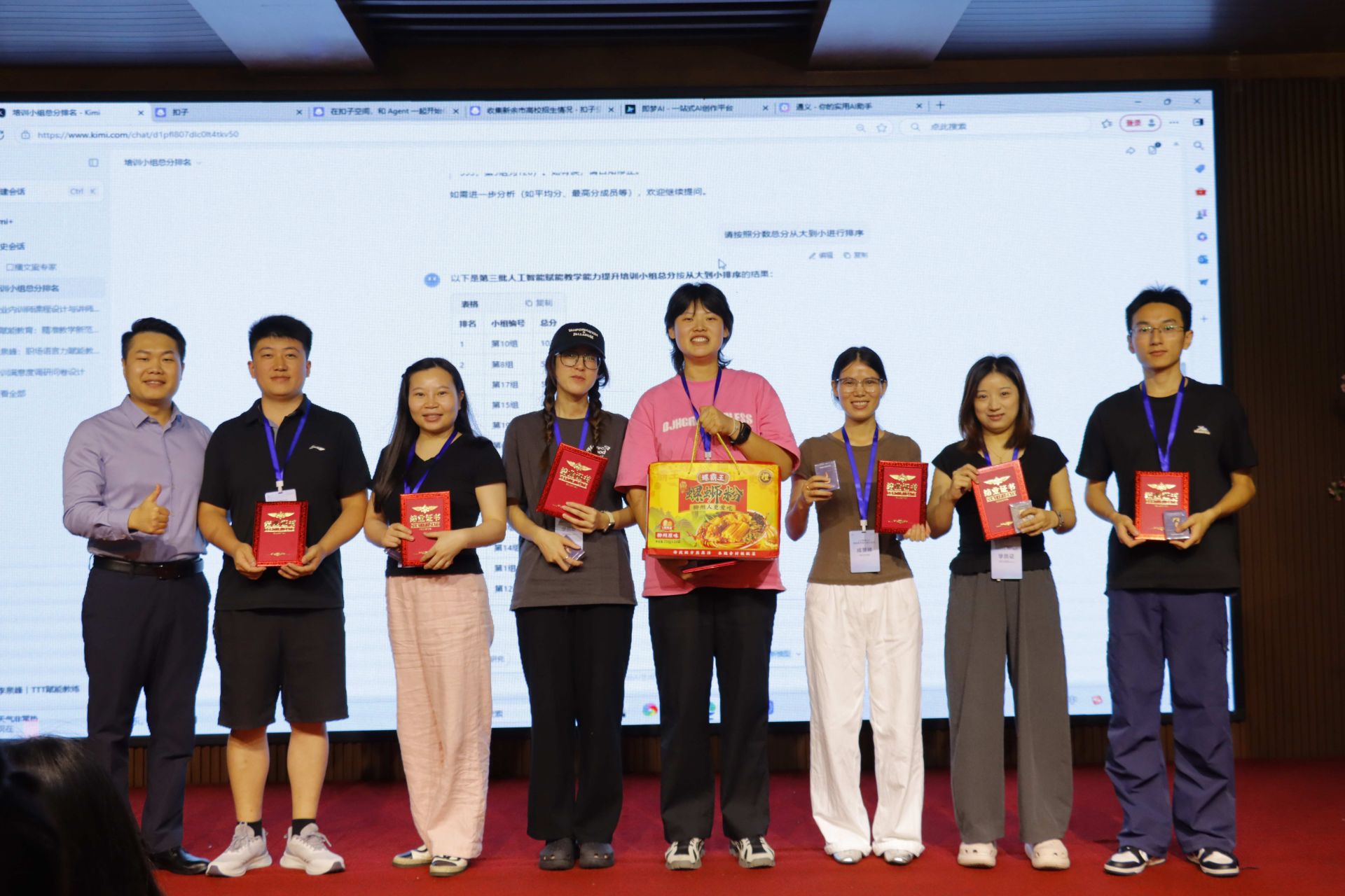 在展示环节中,各小组借助AI生成视频、创意作品等形式呈现学习成果,积分竞争机制提升了参与度与互动性。“我们不仅掌握了AI工具的多元应用技巧,更从同伴身上汲取了创意灵感。”教师代表彭艳鹏感慨道。