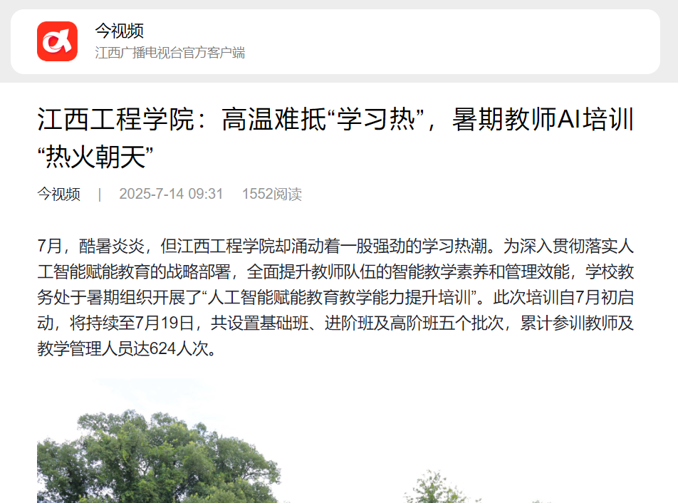 7月,酷暑炎炎,但beat365体育官方网站却涌动着一股强劲的学习热潮。为深入贯彻落实人工智能赋能教育的战略部署,全面提升教师队伍的智能教学素养和管理效能,学校教务处于暑期组织开展了“人工智能赋能教育教学能力提升培训”。此次培训自7月初启动,将持续至7月19日,共设置基础班、进阶班及高阶班五个批次,累计参训教师及教学管理人员达624人次。