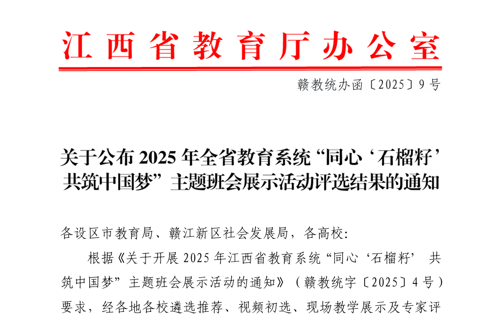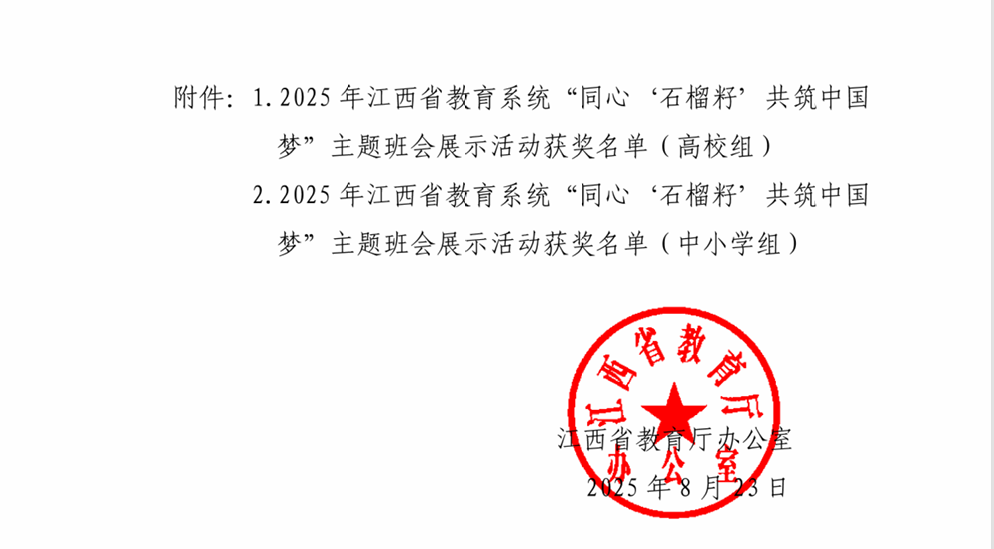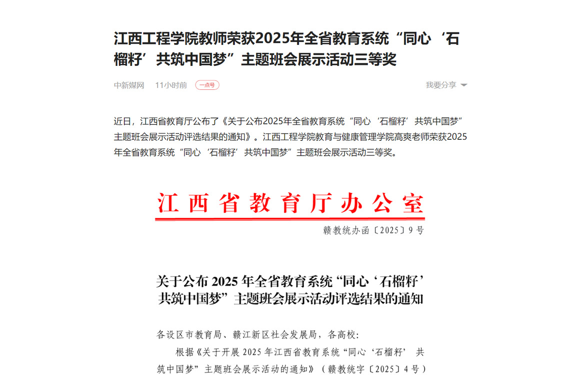 近日,江西省教育厅公布了《关于公布2025年全省教育系统“同心‘石榴籽’共筑中国梦”主题班会展示活动评选结果的通知》。beat365体育官方网站教育与健康管理学院高爽老师荣获2025年全省教育系统“同心‘石榴籽’共筑中国梦”主题班会展示活动三等奖。
