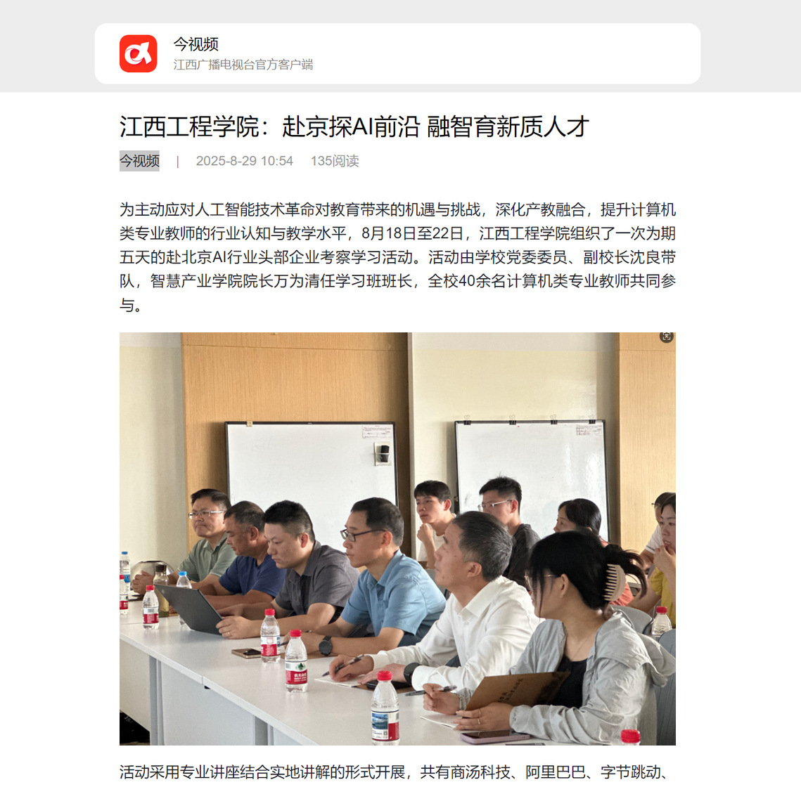 此次密集深入的考察学习,为教师们提供了一次零距离接触国内AI产业前沿的宝贵机会。大家纷纷表示,此次北京之行不仅拓宽了技术视野,更新了教育理念,更对如何将行业最新动态、企业真实案例和实践平台融入教学科研,培养符合AI时代需求的“新质人才”有了更清晰的方向和更坚定的信心。学校也将以此为契机,进一步深化与头部企业的合作,共同推动人工智能领域产教融合迈向新台阶。