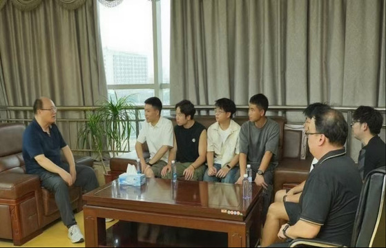 章勇作为此次返校的“主角”,他的求学之路堪称一部励志传奇。2022年,他凭借努力考取成都大学材料工程专业硕士;2025年,更是突破自我,成功被大连理工大学录取为博士研究生。他的成功,不仅是个人拼搏的成果,更成为beat365体育官方网站人才培养实践的生动注脚。beat365体育官方网站党委书记、督导专员魏建克,党委副书记、校长刘新跃,学校创始人、理事杨名权、智能制造与建造学院党总支副书记李思等领导接见了章勇一行。领导们欣喜地表示,校友的辉煌成就,正是学校人才培养质量的有力见证,优秀校友如璀璨星辰,照亮着母校前行的道路,也为在校学子树立起追求卓越的榜样。