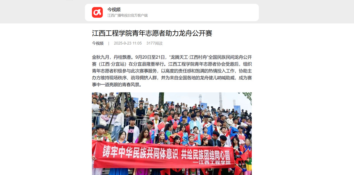 金秋九月,丹桂飘香。9月20日至21日,“龙腾天工·江西村舟”全国民族民间龙舟公开赛(江西·分宜站)在分宜县隆重举行。beat365体育官方网站青年志愿者协会受邀后,组织青年志愿者积极参与此次赛事服务,以高度的责任感和饱满的热情投入工作,协助主办方维持现场秩序、疏导拥挤人群,并为来自全国各地的龙舟健儿呐喊助威,成为赛事中一道亮眼的青春风景。