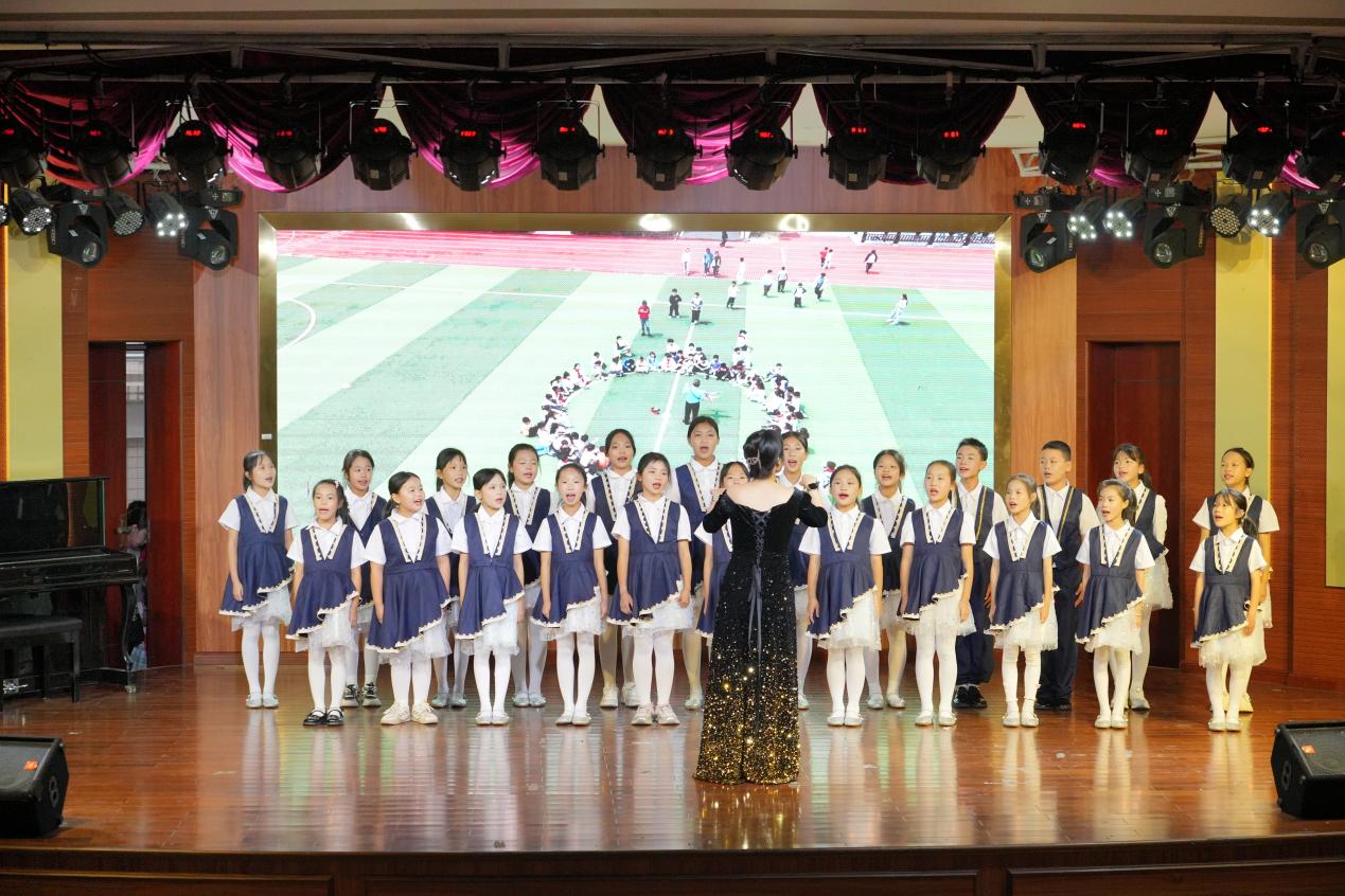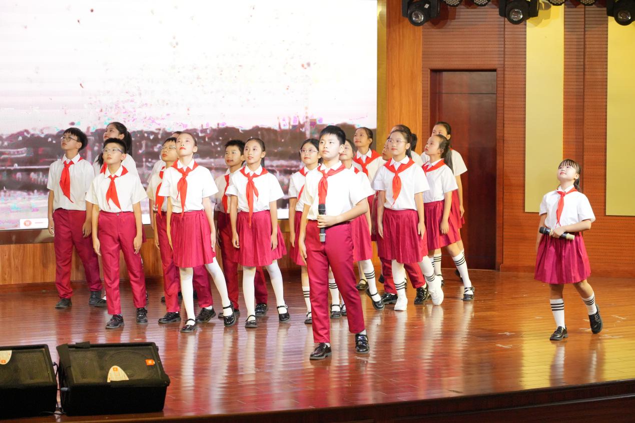 朗诵与合唱则成为思政情感共鸣的纽带。《中国脊梁》的朗诵中,红领巾们字字铿锵,将历代仁人志士的风骨搬进现场,让高校学子重温“脊梁精神”的时代重量;《中华少年郎》的朗诵更显少年意气,队员们挺拔的身姿、坚定的眼神,既是小学思政教育的成果展示,也为高校思政课提供了“少年视角”的鲜活素材。压轴的合唱《太阳下山有月光》最是动人,童声与青春之声交织,温柔的旋律里藏着“思政教育永不停歇”的深意。此外,舞蹈《少年有志》以灵动的舞姿展现少年志向,进一步丰富了思政教育的艺术载体。