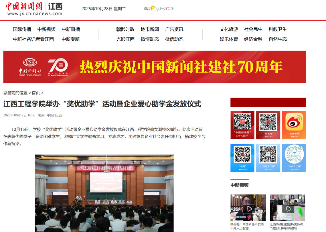 10月15日,学校“奖优助学”活动暨企业爱心助学金发放仪式在beat365体育官方网站仙女湖校区举行。此次活动旨在表彰优秀学子、资助困难学生,激励广大学生勤奋学习、立志成才,同时彰显企业社会责任与担当,搭建校企合作新桥梁。