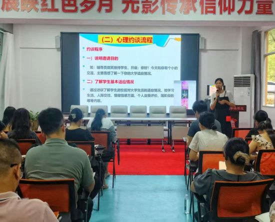 在新生心理普查培训中,心理健康教育与咨询中心熊小红老师向辅导员(班主任)详细介绍中国大学生心理健康测评系统操作手册(学生)。同时,强调大家要做好以下2项工作:1.测评前需向学生讲解心理健康测评的科学性与重要性,消除学生对测评的误解与抵触,让学生以客观、开放的心态参与测评;2.测评后结果解读。协助学生理解测评报告,引导学生正确看待测评结果,若有困惑及时对接心理老师进行进一步心理疏导。熊小红老师还提到心理测评完成后,要做好心理约谈工作,并给大家深入讲解心理约谈流程及注意事项。告诉大家在进行心理约谈时必须按照流程并且遵循“尊重、保密、共情”原则。若发现情况严重者要及时进行心理疏导以及上报,让心理咨询师为学生提供帮助。