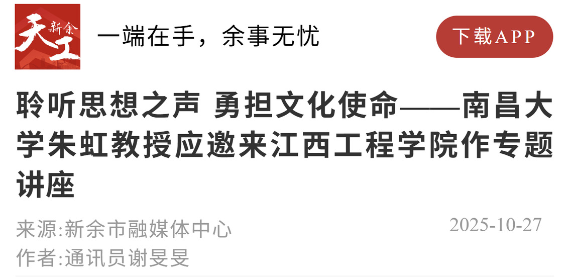“朱虹教授以新余文化为主题作精彩讲座,必将为我们深入解读新余文化基因,增强文化自信,激发奋进力量提供全新视角。”听完讲座后,大家纷纷表示,朱虹教授的讲座为大家进一步深化理解天工文化育人特色提供了强劲动力。