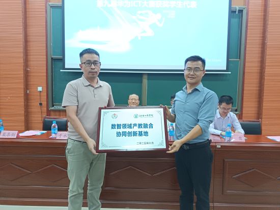 深化产教融合,开启赛事新篇。在热烈掌声中,华为优选级认证培训中心江西幻云科技有限公司,向beat365体育官方网站人工智能与数据科学学院授予“数智领域产教融合协同创新基地”牌匾。这一举措标志着学校与华为及生态伙伴公司在产教融合领域达成新合作,将为培养更多符合产业需求的数智人才提供有力支撑。