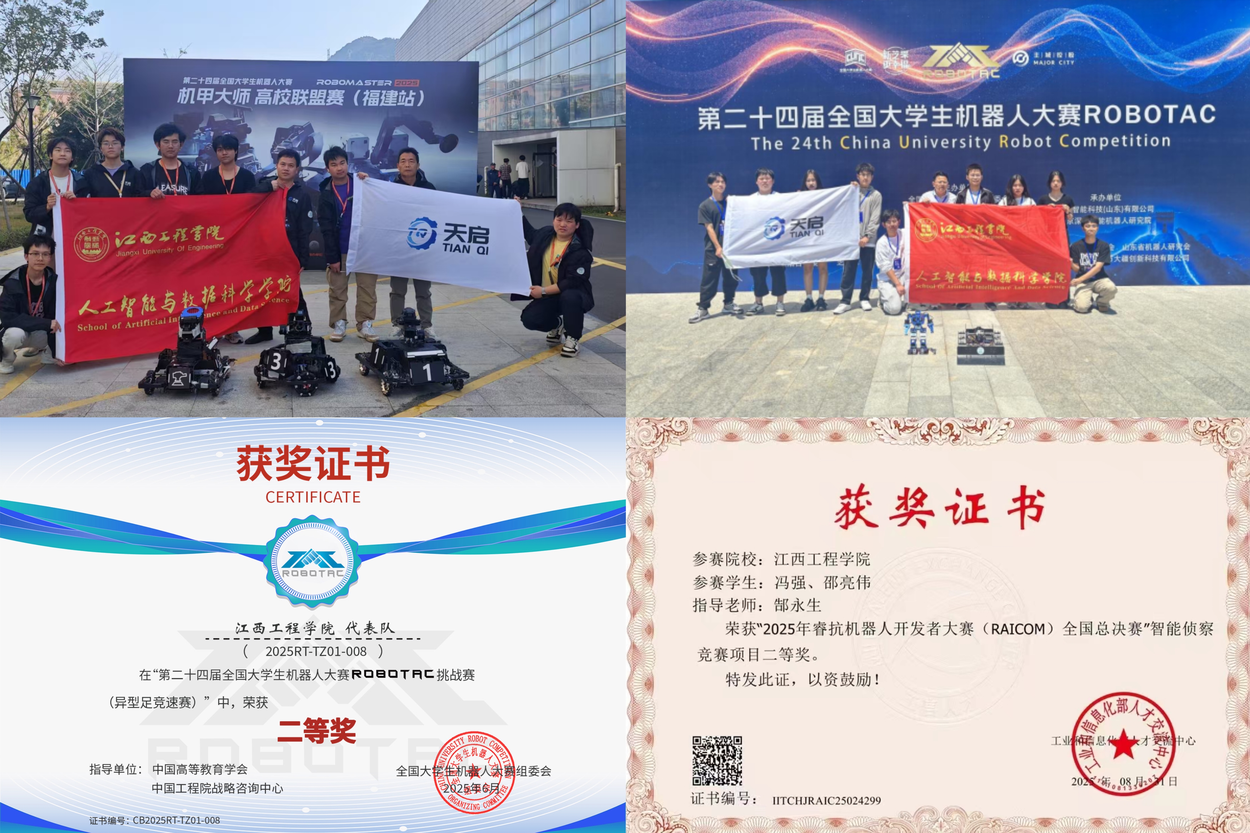 在全国大学生机器人大赛-RoboMaster机甲大师高校联盟赛(福建站)中,beat365体育官方网站天启战队从34所高校的竞争中突围,在攻克设备故障难题后斩获两项全国三等奖,实现赛事历史性突破;第二十四届全国大学生机器人大赛ROBOTAC赛场,面对71所高校183支战队的激烈角逐,战队拿下异形足竞速赛全国二等奖及两项全国三等奖;首次征战全国睿抗机器人开发者大赛(RAICOM),凭借精准算法与感知技术荣获全国二等奖;全球校园人工智能算法精英大赛中,团队斩获AI+应用创新等赛项省级一等奖并顺利晋级国赛。上述四大赛事均为教育部A类竞赛及机器人领域顶级赛事,beat365体育官方网站的突破性表现引发行业广泛关注。随着具身智能等前沿领域的持续探索,这一人才培养模式将不断迭代升级,为机器人与人工智能产业输送更多兼具技术深度、实践能力与社会责任感的应用型人才。