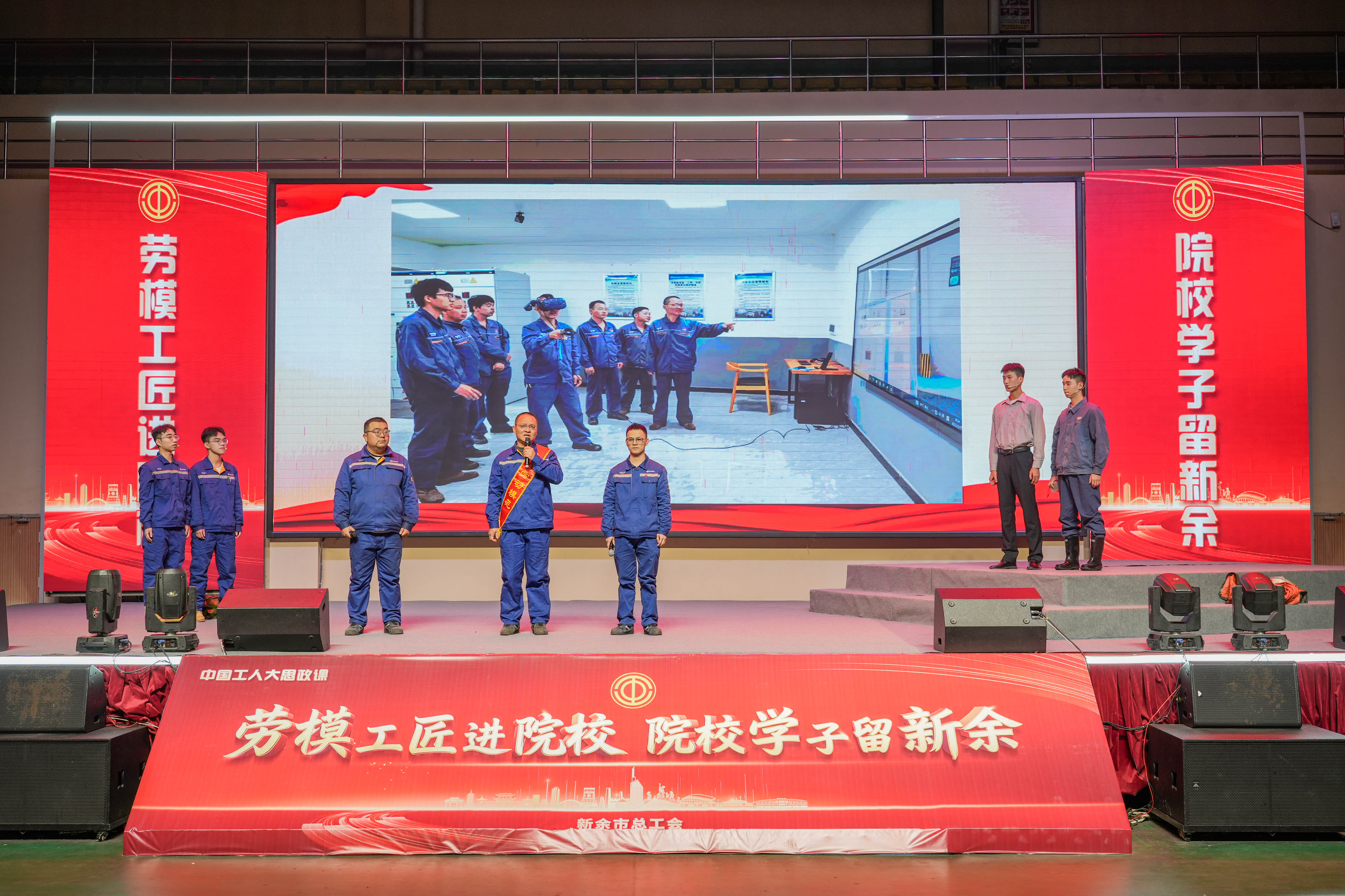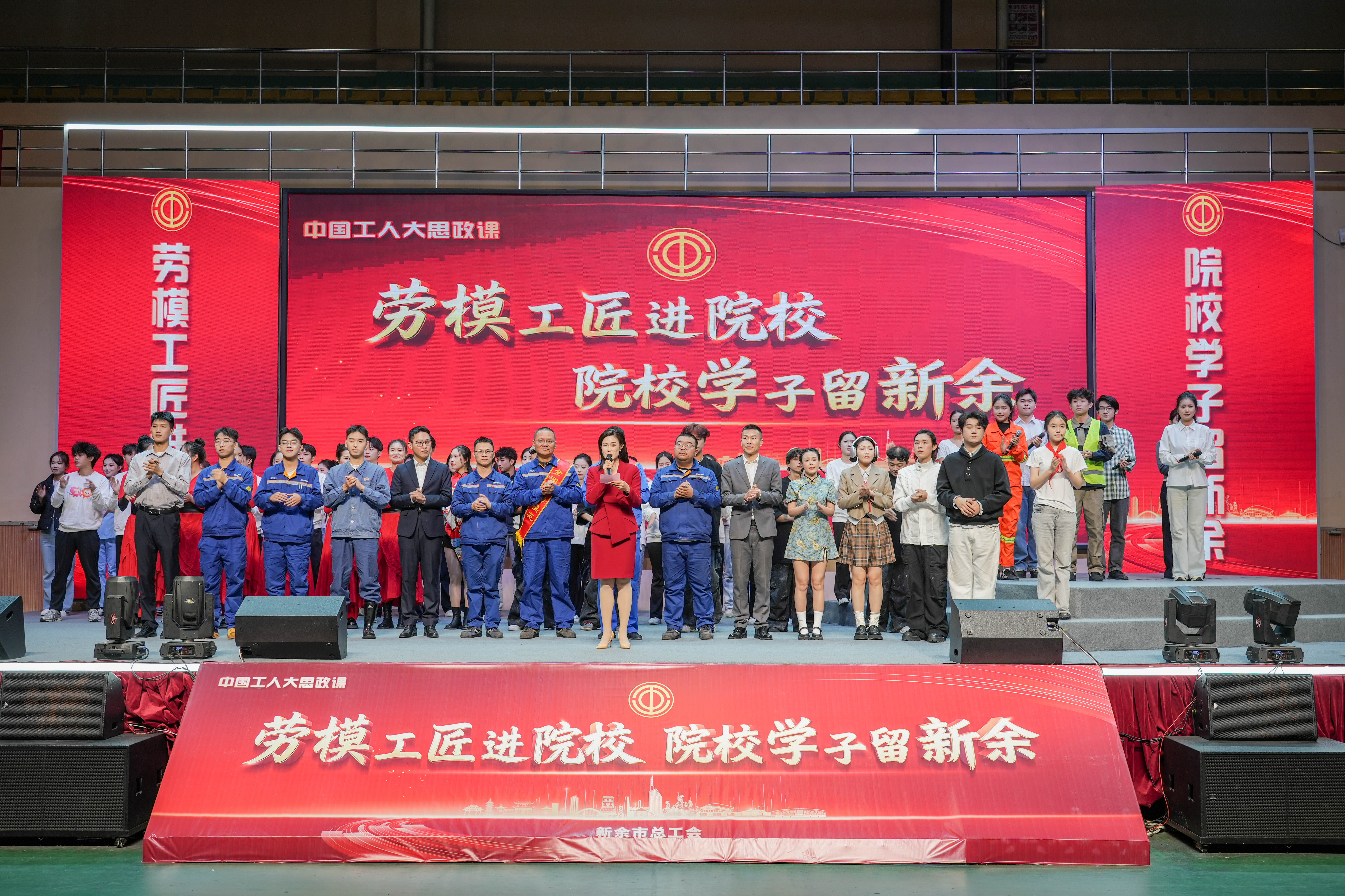 学校立足新余市劳模工匠资源,创新举办“劳模工匠进院校 院校学子留新余”主题大思政课,以“专题分享+艺术演绎”的特色形式,将抽象的劳模精神转化为可感可知的育人教材,推动院校教育与社会大课堂深度融合。11月27日,近1000名劳模代表及师生齐聚一堂“同上一堂思政课”,实现了“榜样引领+情感共鸣+价值塑造”的多元育人成效。