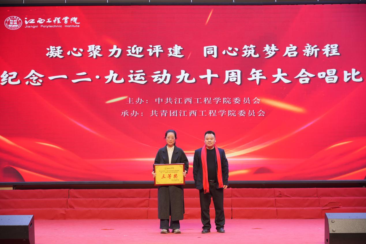 歌声激荡,余韵悠长。本次纪念“一二·九”运动90周年大合唱比赛既是一堂生动的爱国主义教育课,也是学校推进思政育人与艺术教育融合的生动实践,更是一次浸润心灵的思想洗礼。立足新时代育人使命,学校将继续坚持以史育人、以情动人、以文化人,不断拓展爱国主义教育的内涵载体与实践路径,推动红色基因融入青春血脉,让信仰光芒照亮奋斗征程,教育引导广大青年学子在时代的浪潮中坚守初心、勇担重任,与光同行、奋发向前!