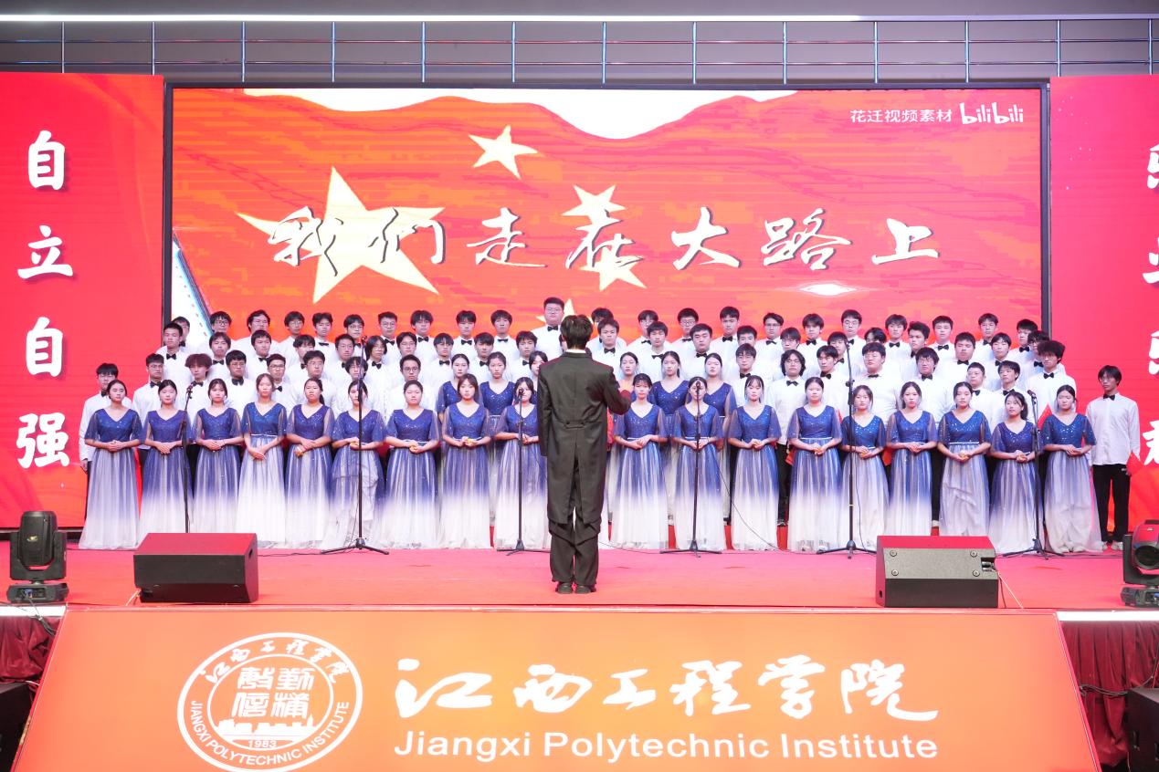 智慧产业学院演唱的《我们走在大路上》不仅歌颂了建设年代的创业精神,还激励了一代代青年在民族复兴的征程上斗志昂扬、奋勇向前。