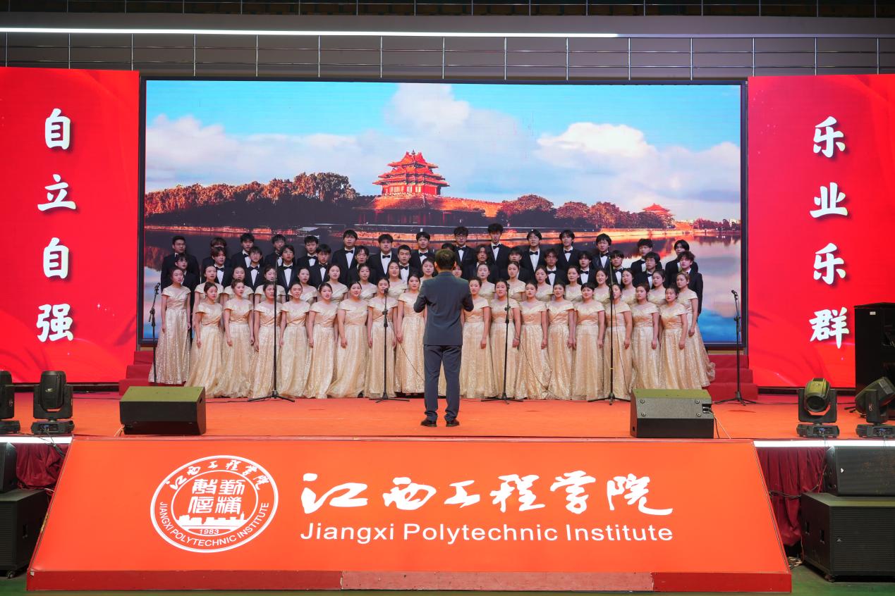 电子信息工程学院演唱的《大中国》豪迈旋律倾泻而出,唱出了对祖国山河最炽热、最自豪的无限热爱。