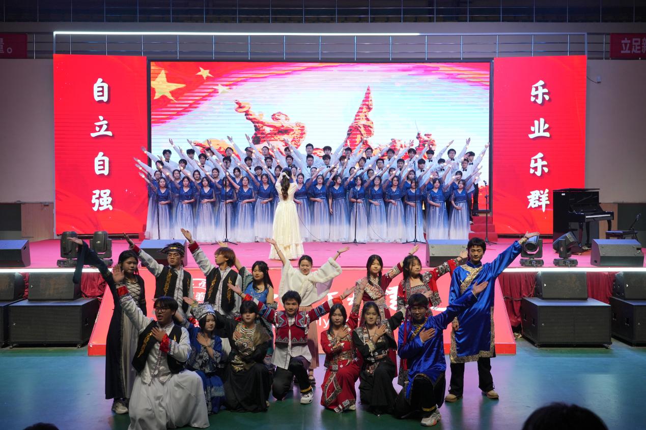 当《相亲相爱》熟悉的旋律响起,人工智能与数据科学学院少数民族学生手拉手走上舞台,脸上洋溢着幸福的笑容,歌声中充满了对民族团结的珍视和对美好未来的憧憬。
