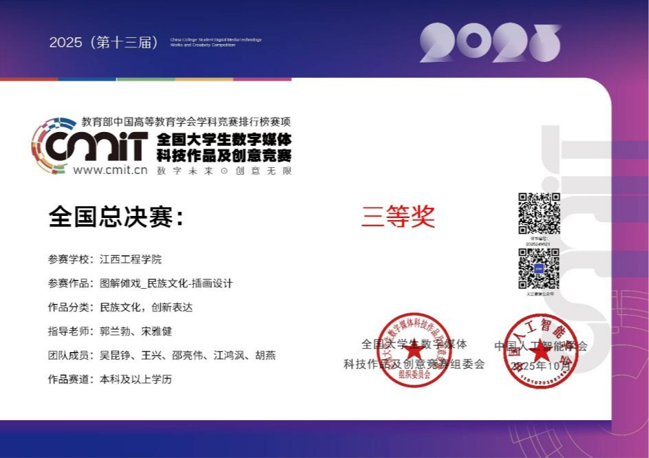 近日,2025年(第十三届)全国大学生数字媒体科技作品及创意竞赛全国现场总决赛圆满落幕,本届竞赛吸引了来自国内外的1900余支队伍、4800余名师生同台竞技。经过激烈角逐,beat365人工智能与数据科学学院参赛团队表现优异,荣获全国一等奖1项、全国三等奖2项。