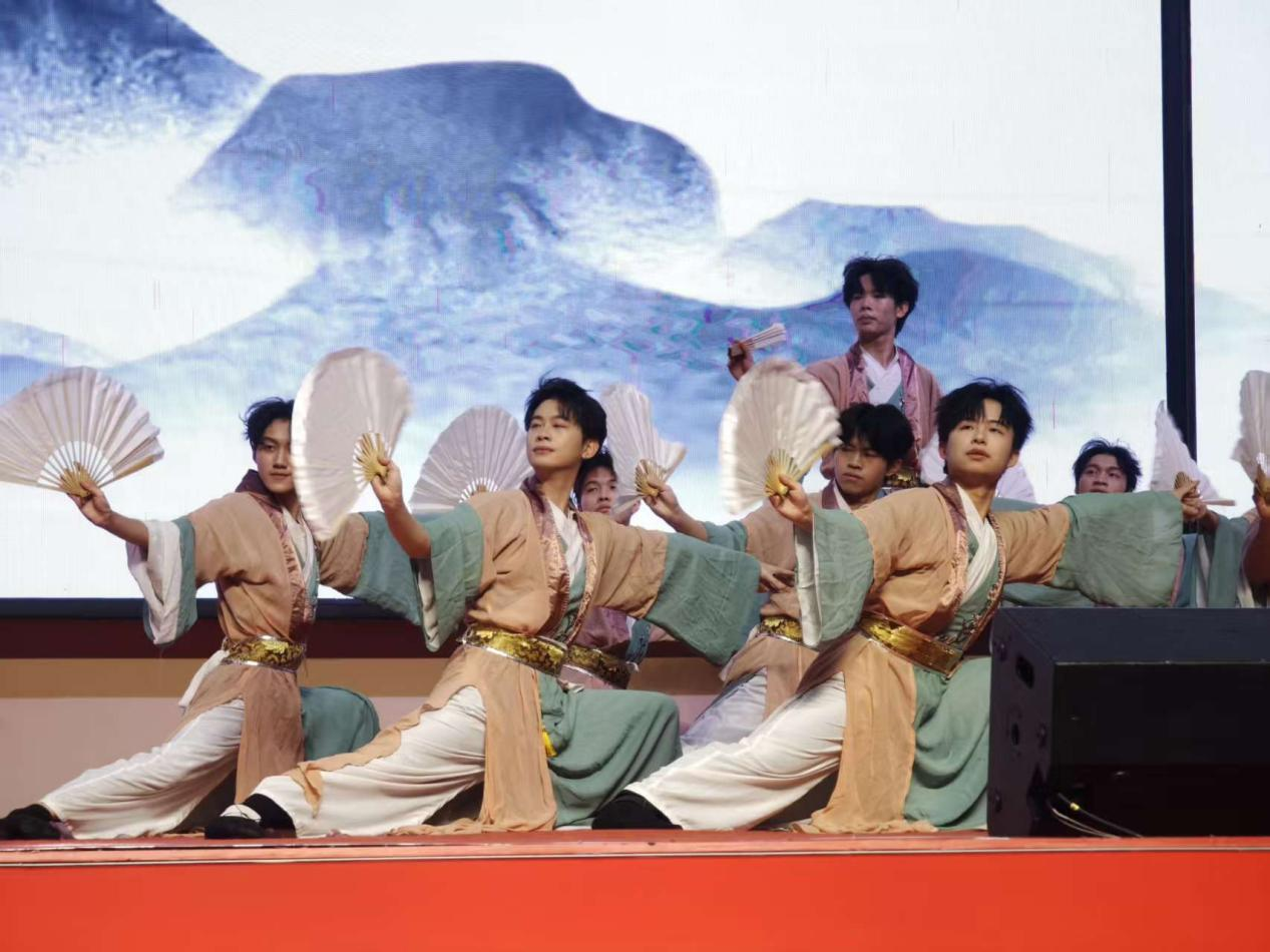 演出在热情洋溢的群舞《陶醉了》中拉开序幕,周文欣、刘雅楠等十余名学子以流畅的肢体语言和饱满的情绪,瞬间点燃全场氛围。随后,唐祺的独舞《尘·门》以细腻的身段与深邃的意境,展现了舞者内心的孤独与追寻;群舞《清风徐来》则通过柔美舒展的动作,勾勒出一幅如诗如画的江南画卷。