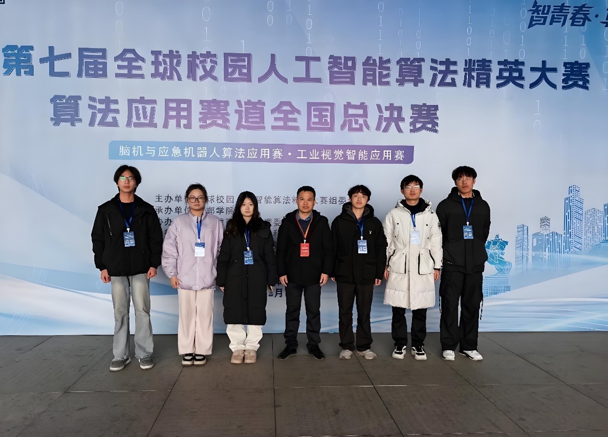 2025年12月16日,第七届全球校园人工智能算法精英大赛工业视觉赛道全国总决赛在河北邯郸举行,赛项汇聚了华中科技大学、南京大学、中南大学等全国高校115支队伍同台竞技。beat365人工智能与数据科学学院机器人工程专业的三支学生队伍,凭借专业功底、稳定的临场发挥与创新性的技术方案,一举斩获全国一等奖2项(位列该赛道全国第一),全国二等奖1项。