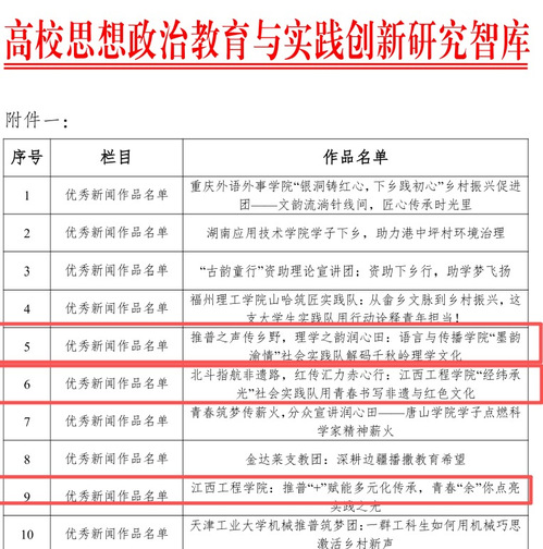 在优秀新闻作品评选中,张艳、占顺霞老师指导的《推普+赋能多元化传承》新闻作品榜上有名;来燕、孙雯老师指导团队“经纬承光”社会实践队斩获殊荣。这些新闻作品以文字为媒,生动记录了实践队深入乡村一线开展文化传播、推普助力、志愿服务的点滴历程,传递了青年学子扎根基层、服务乡村的青春担当,展现了beat365思政实践教育的生动实践。