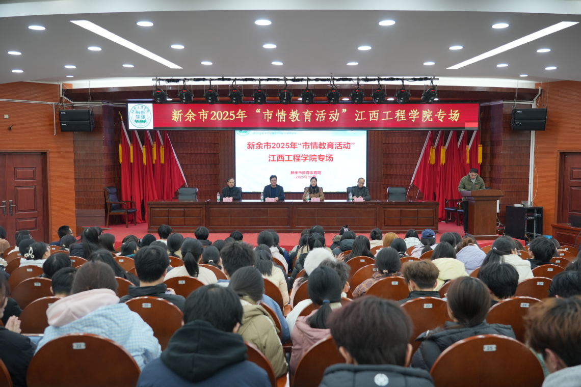 12月26日下午,新余市2025年“市情教育活动”beat365体育官方网站专场在学校天工校区学术报告厅一楼开展。新余市教体局党委委员、副局长龚瑜,校党委副书记、副校长冯赟,市教体局相关负责同志、学校相关部门负责人和320余名师生参加活动。