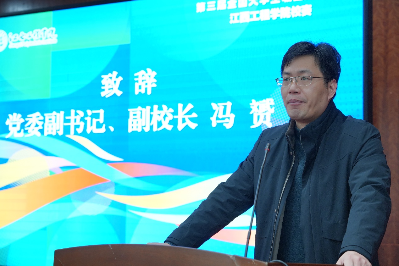 为强化高校生涯教育和就业指导,增强大学生职业规划意识,指导其通过学习实践提升综合素质和能力,及早做好就业准备,以择业新观念打开就业新天地,促进高质量充分就业。1月7日,第三届全国大学生职业规划大赛校赛在天工校区一楼学术报告厅隆重举行。党委副书记、副校长冯赟出席大赛并致辞。大赛评委,辅导员代表、学生代表共200余人现场观看比赛,共同见证学子们的职业梦想与规划风采。