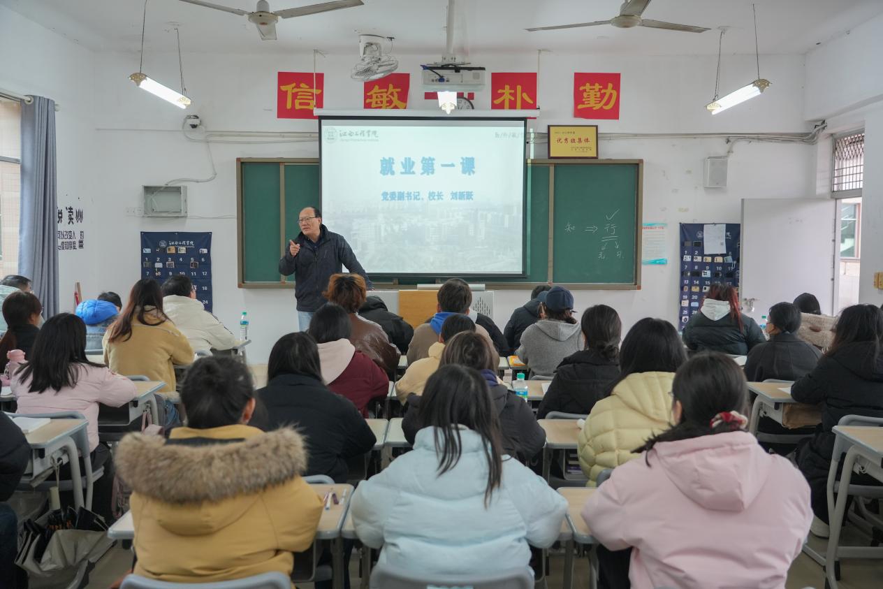 为深入贯彻党中央、国务院关于做好高校毕业生就业工作的决策部署,扎实推进高校毕业生就业“一把手”工程,强化就业育人实效,近日校党委副书记、校长刘新跃走进经济管理学院2024级人力资源管理本科1班,同学们带来了一场意义重大、内容丰富的“就业第一课”,为同学们的大学生活与未来职业发展提供指导、指明方向。