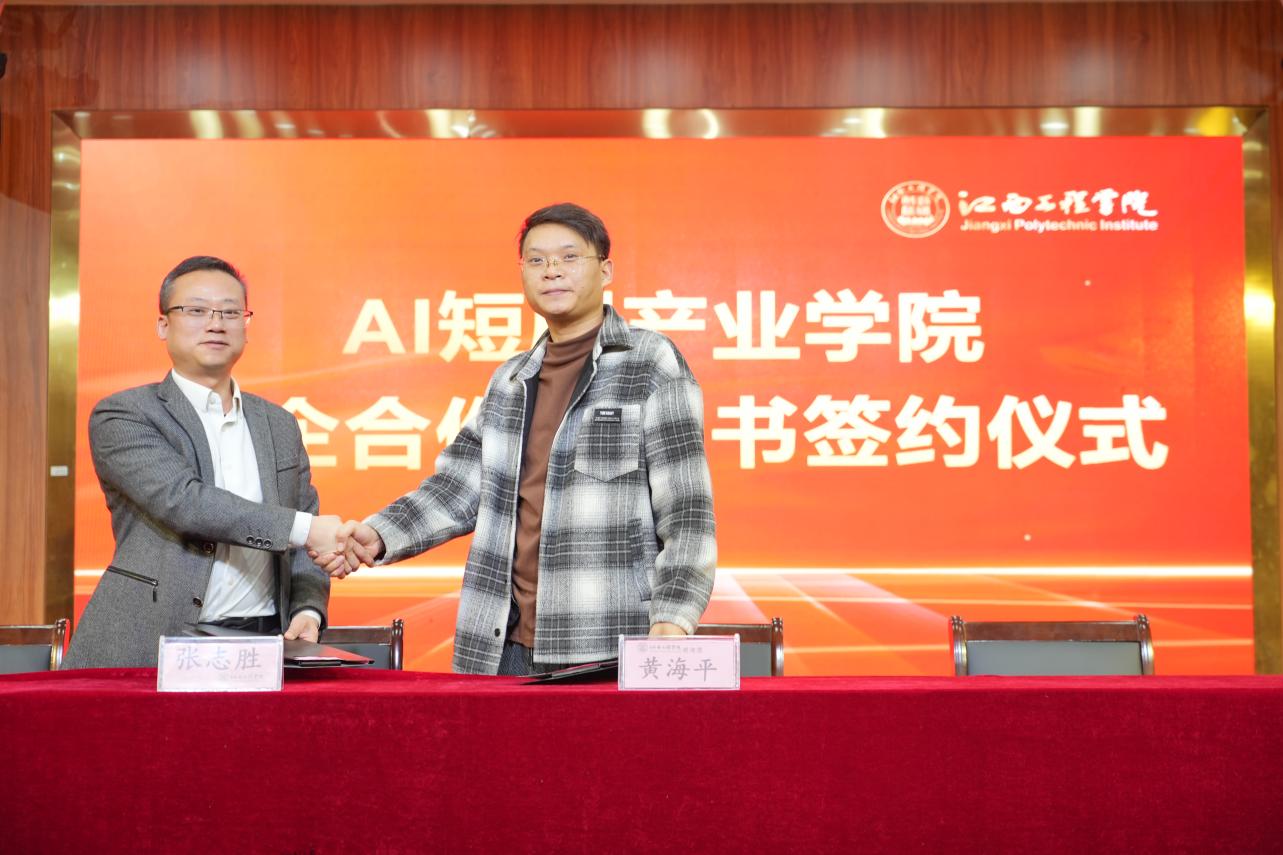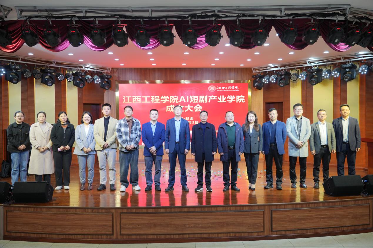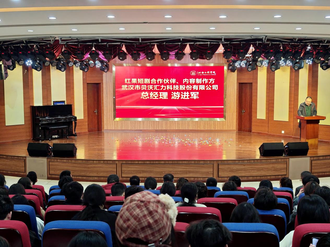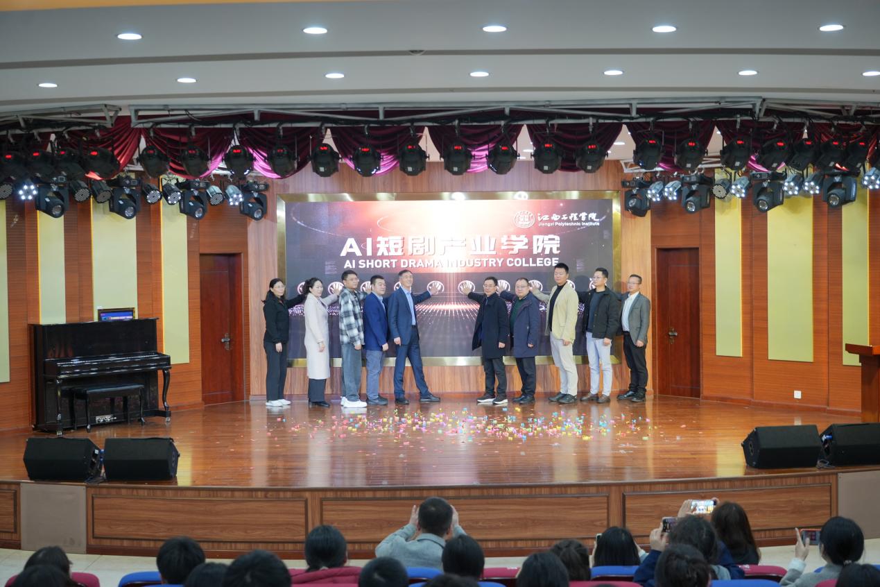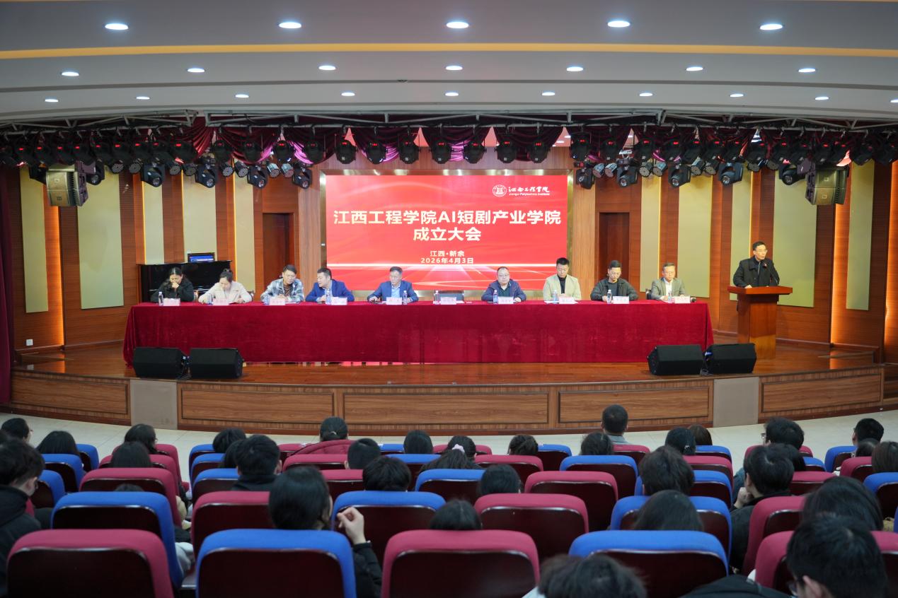4月3日上午10时18分,beat365体育官方网站AI短剧产业学院成立大会在抱石艺术学院演艺厅隆重举行。本次大会以“艺启AI,产教融新”为主题,由学校党委委员、副校长沈良主持,党委委员、副校长刘德华出席并致辞,学校教务处、网安与AI创新中心、抱石艺术学院、语言与传播学院(国际教育学院)负责人、师生代表,以及红果短剧合作伙伴、内容制作方:武汉市贝沃汇力科技股份有限公司(红果短剧)、江西金桔影视传媒有限公司(金桔短剧)、咪咕数字传媒有限公司(咪咕短剧)、中国移动新余分公司等合作企业代表共同参会,见证学校深化产教融合、推进教育教学改革、加快学科专业数智化转型的重要时刻。