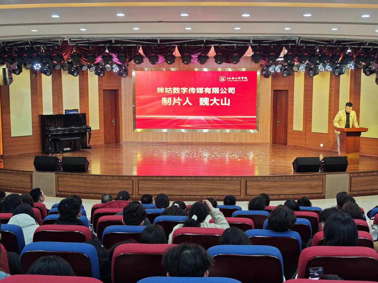 张志胜代表抱石艺术学院进行发言。他表示,学院将以产业学院建设为契机,持续深化教育教学改革,创新项目化实战育人模式,依托算力平台推动教学与产业深度融合,不断提升人才培养与产业需求的契合度,努力将AI短剧产业学院建设成为产教融合样板、教学改革示范、文化创新高地,为学校高质量发展和地方文化产业繁荣贡献更大力量。