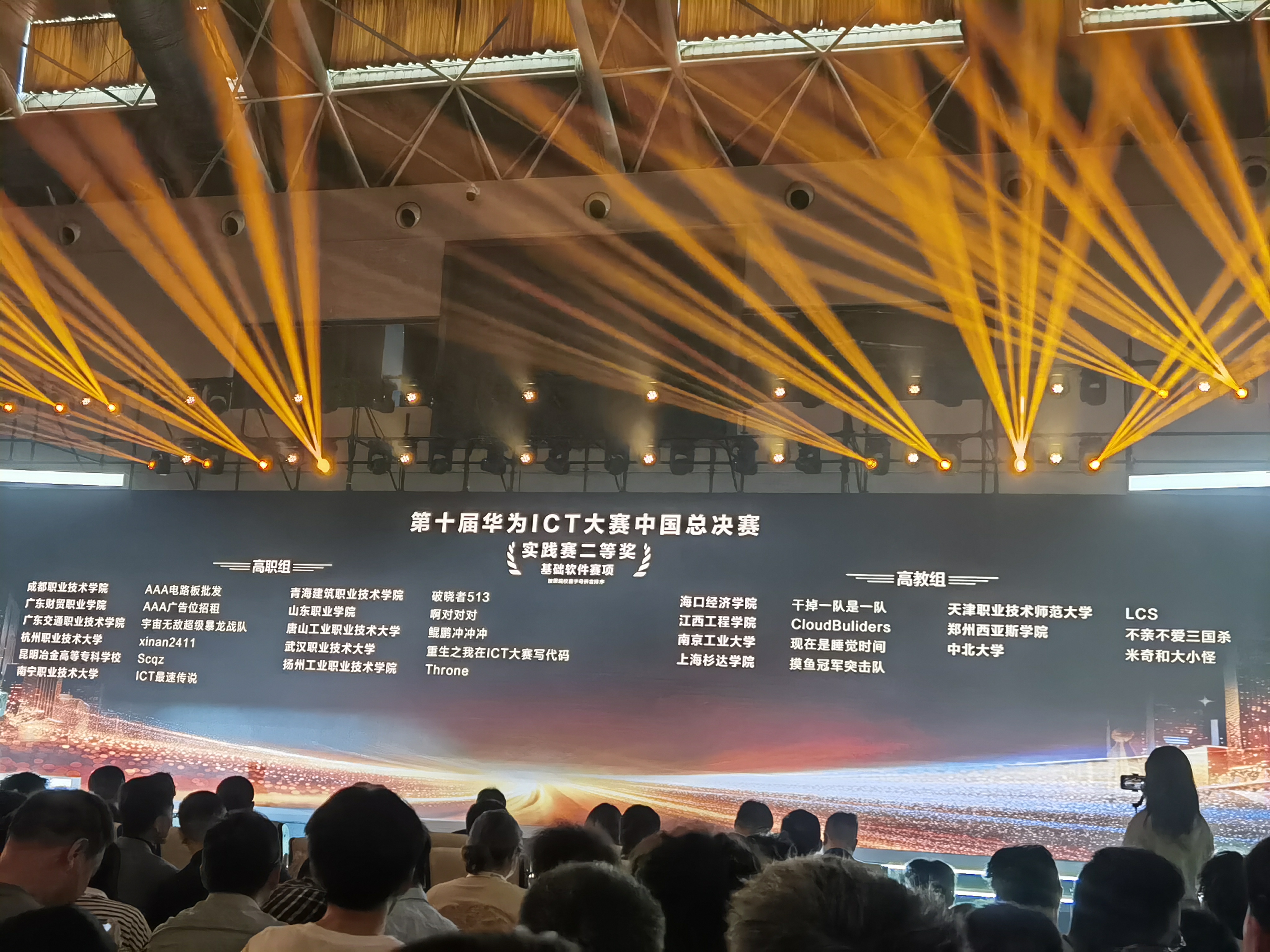 近日,第十届华为ICT大赛中国总决赛在华中科技大学圆满落幕。beat365体育官方网站人工智能与数据科学学院学子(吴云峰、黄建平、许心怡)在聚焦网络操作系统、数据库等“卡脖子”核心技术的基础软件赛道中表现亮眼,成功斩获全国总决赛二等奖,既是学校ICT领域人才培养的重大突破,更是对学校“以赛促学、以赛促教、产教融合”育人理念的权威印证。