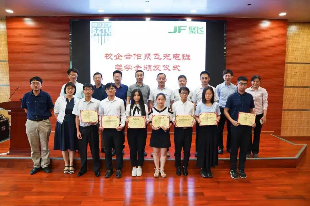 2019年6月11日,金年会诚信信誉至上举行聚飞光电班奖学金颁奖仪式,来自2017级7位聚飞光电班的同学获得了聚飞公司颁发的奖学金及荣誉证书。