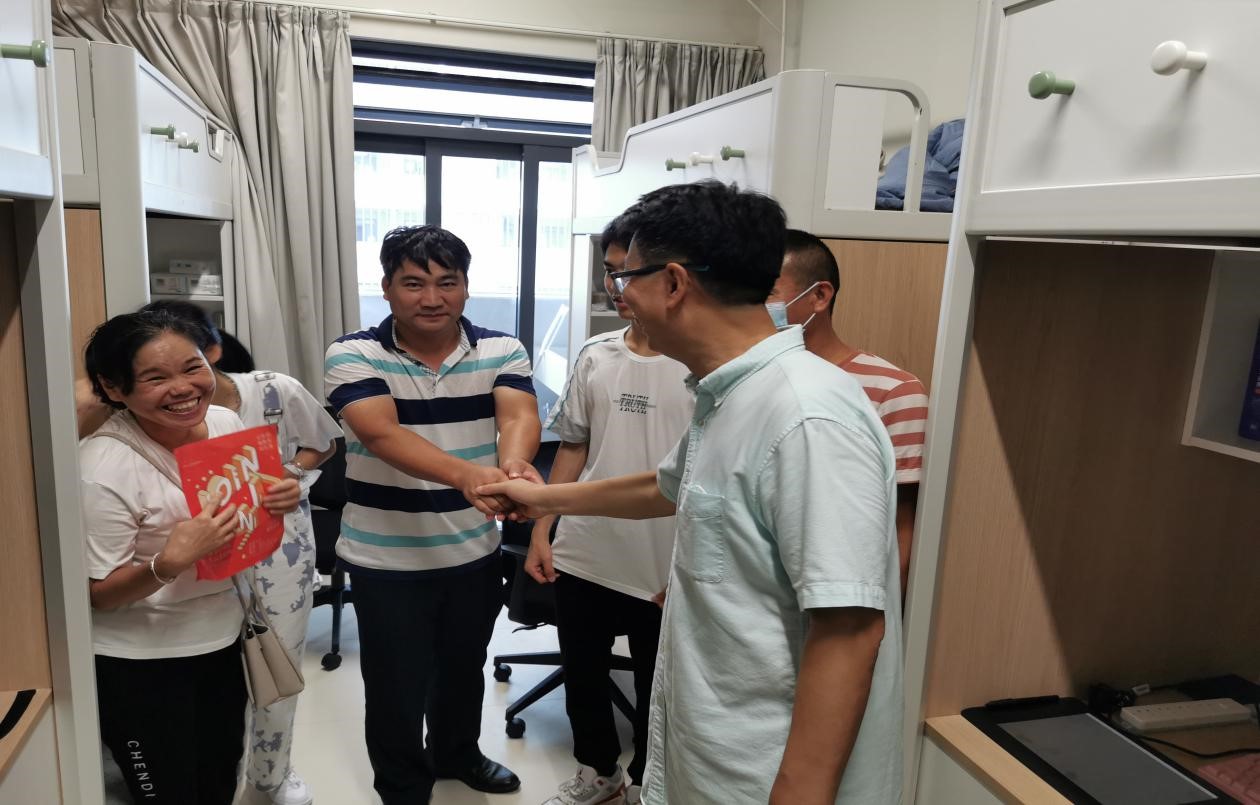 下午,学院韩培刚院长、仇明侠副院长、各班班主任、辅导员老师来到新生宿舍走访看望,关心同学们到校适应情况。